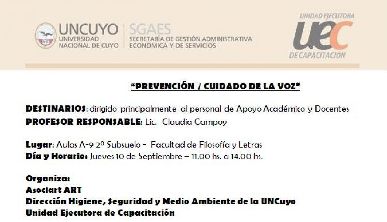 Curso: PREVENCIÓN / CUIDADO DE LA VOZ