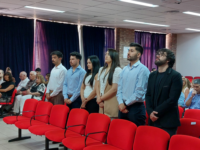 Durante la mañana del viernes la Facultad de Odontología se llenó de emociones y alegría con el último juramento del año 2024. El evento fue presidido por la Vicedecana de la Facultad de Odontología Od. Adriana Marra, la directora de la carrera de Odontología Od. Laura Martín, la Secretaria del área Académica Od. Patricia Echagaray, el Secretario del área Graduados y Estudiantil Od. Franco Morell, la Secretaria del área de Extensión Od. Mariana Ponchon y el Secretario de Ciencia y Técnica Od. Rodrigo Stoehr.